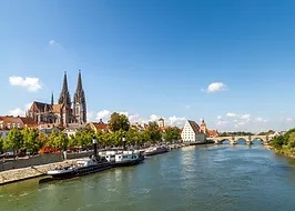 早朝、魅力的なマイン・ドナウ運河の最後の部分を通りケールハイムを通航、さらにドナウ川に沿って航行し、ドイツ最高の中世都市であるレーゲンスブルクへと向かいます。ガイド付き徒歩観光ではドナウ川でも最も古い橋や、旧市庁舎など街の建造物などが印象的です。