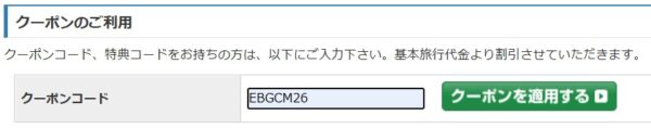 2025年12月31日までに必ずクーポンコード入力してツアーご予約完了してください。